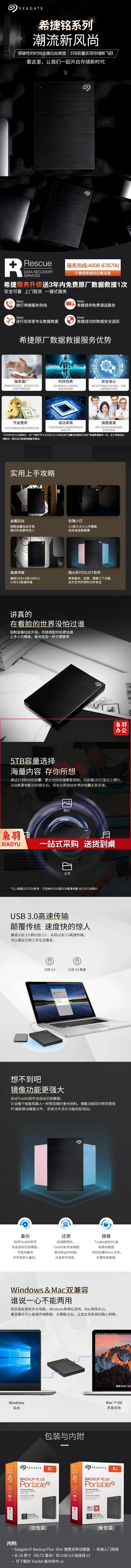 希捷(Seagate) 移动硬盘 5TB/5T USB3.0 铭 2.5英寸金属外壳 兼容Mac