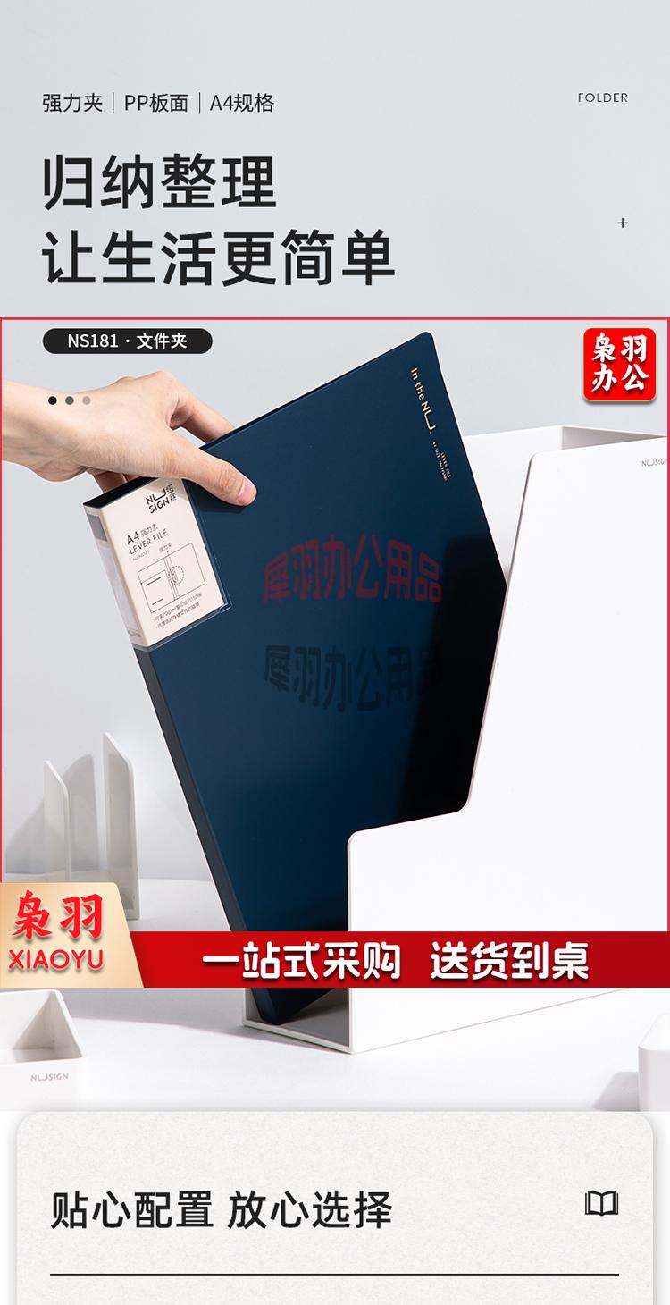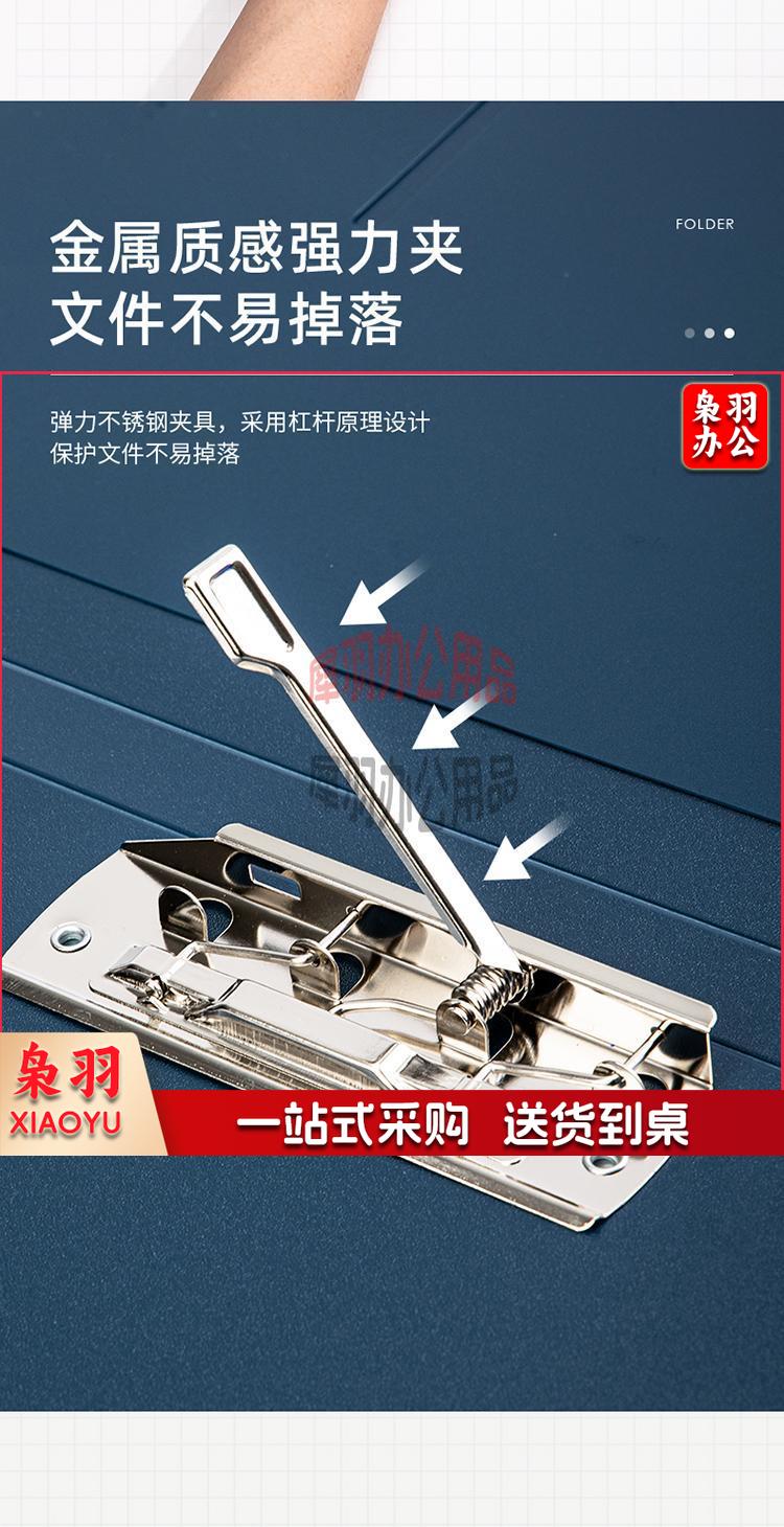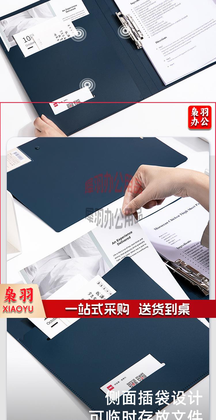 纽赛(NUSIGN)文件夹会议夹 单强力夹加厚资料报告商务板夹文件收纳办公用品 海军蓝NS181