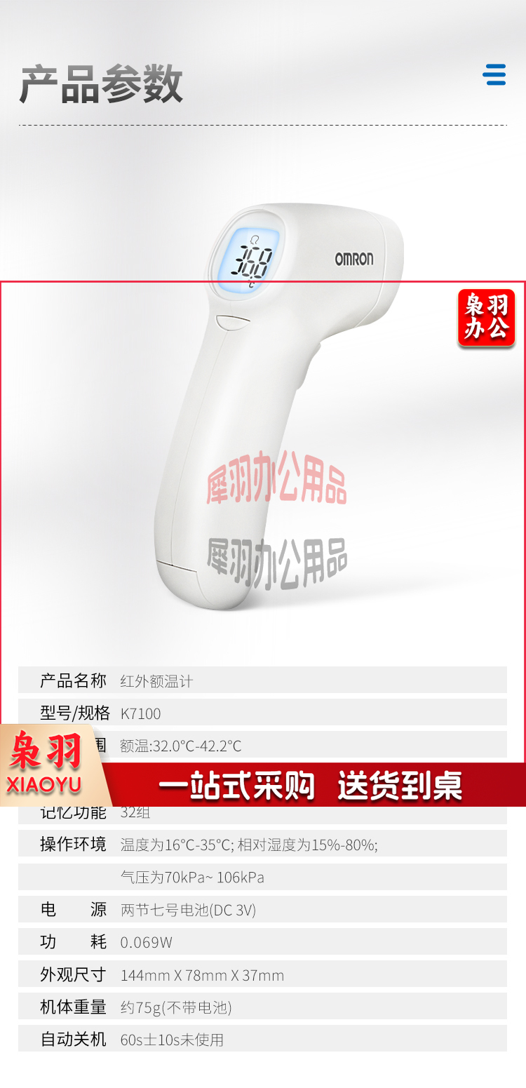 欧姆龙(OMRON)红外额温枪电子体温计 家用温度计 儿童婴幼儿成人体温枪测温仪K7100