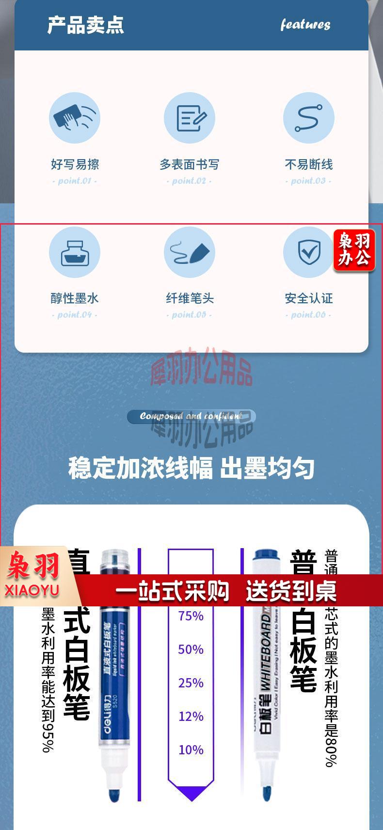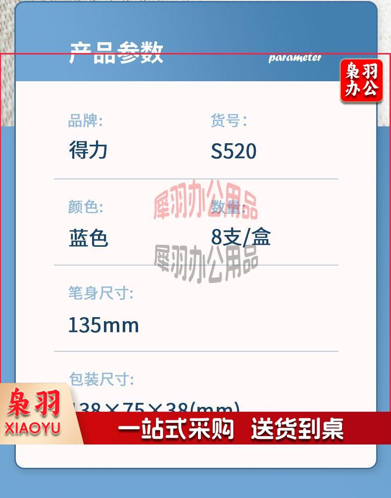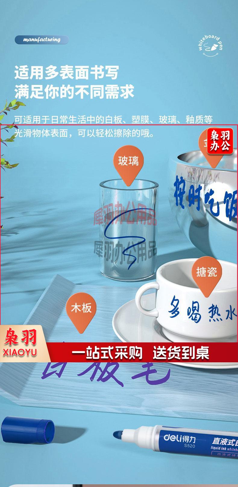 得力(deli) 粗头直液式可擦白板笔 办公教学会议白板笔 办公用品 蓝色 S520蓝单支