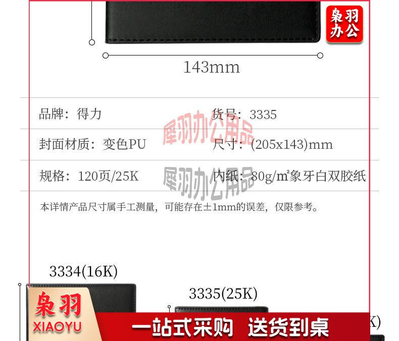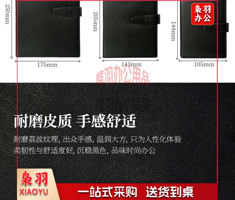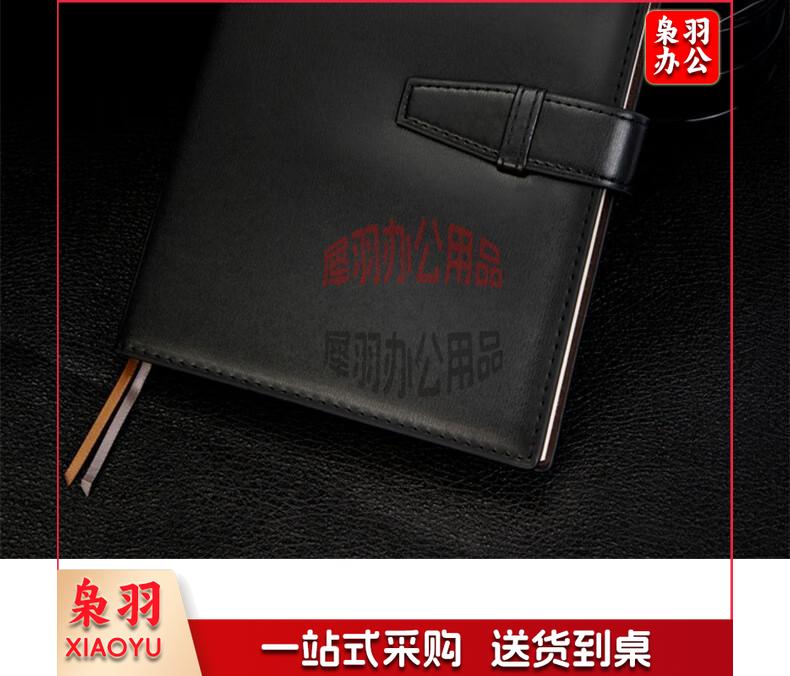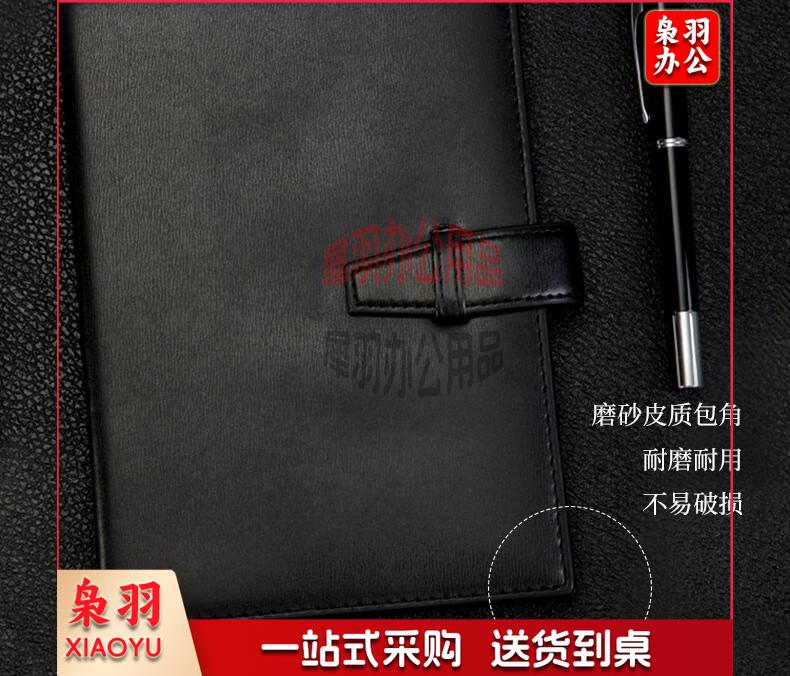 得力(deli)25K120张扣带皮面本办公用品 商务会议记事本日记本笔记本子文具 黑色3335