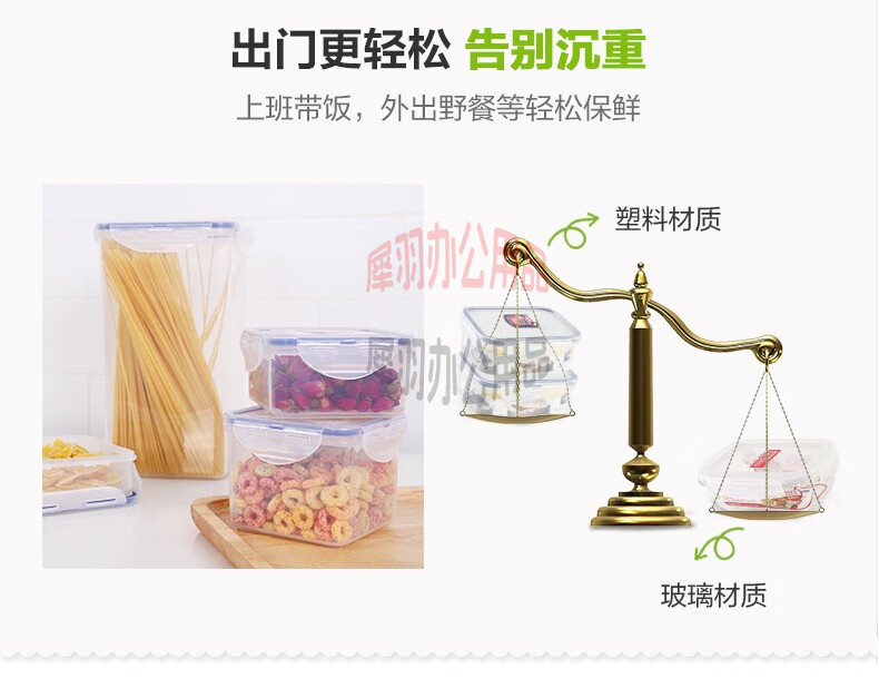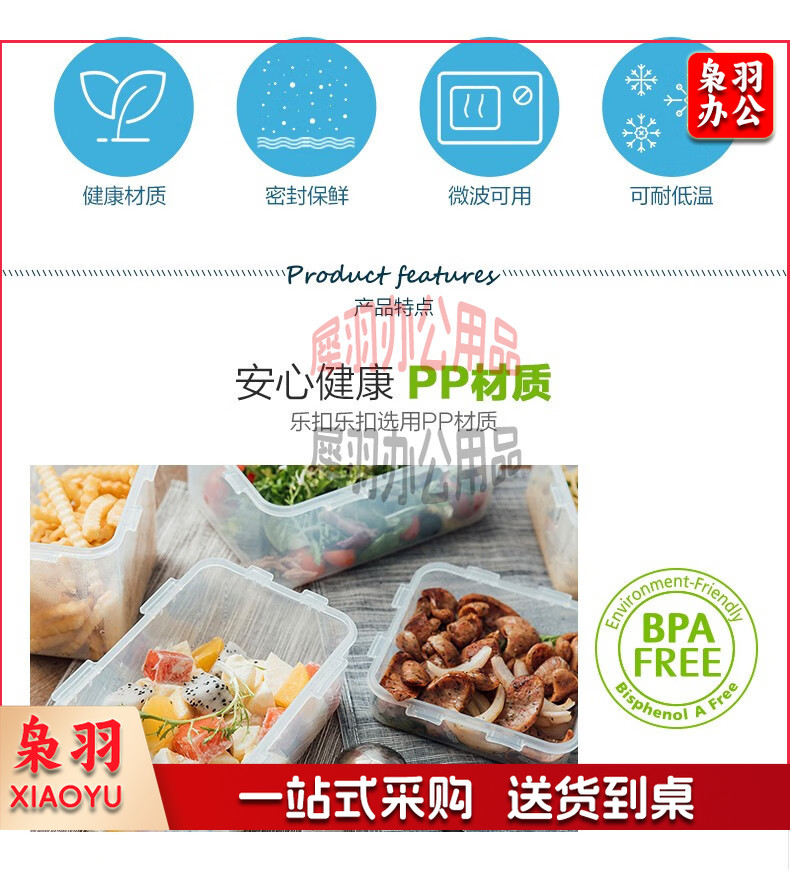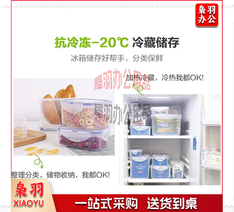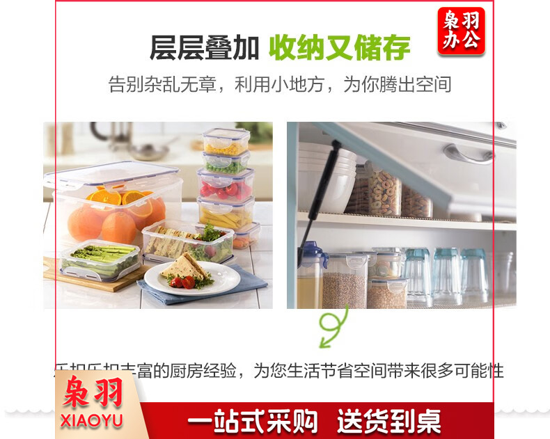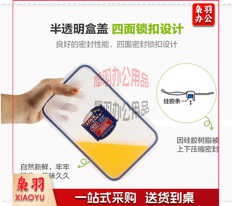 乐扣乐扣LOCK&LOCK HPL855 塑料保鲜盒大容量透明食物冰箱收纳盒子饭盒水果蔬菜微波炉便当盒 860ML