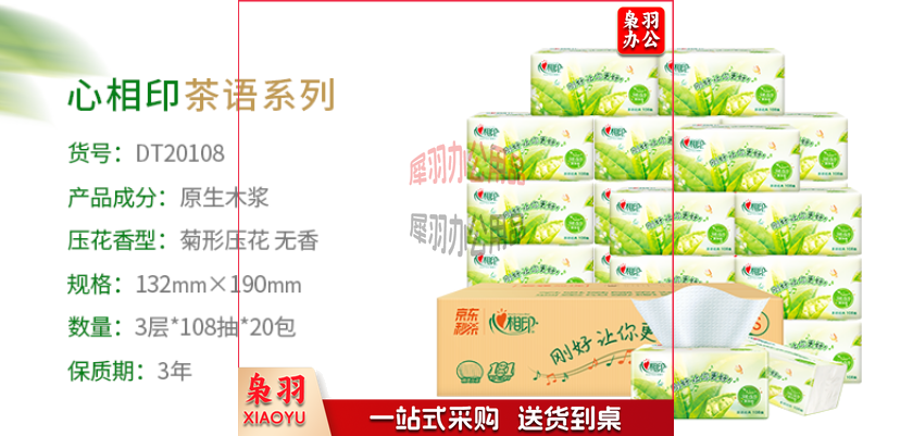 心相印抽纸 茶语系列DT20108 3层108抽纸面巾 S码20包/箱