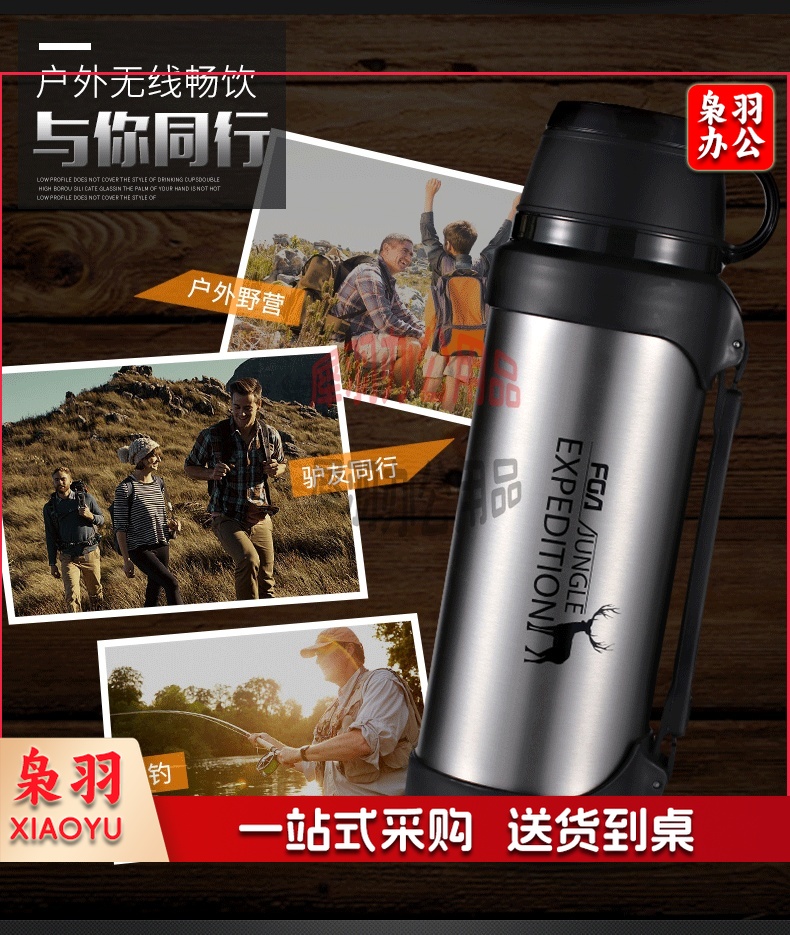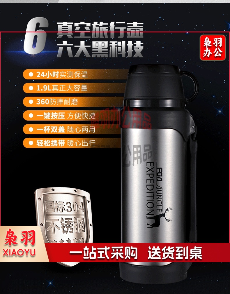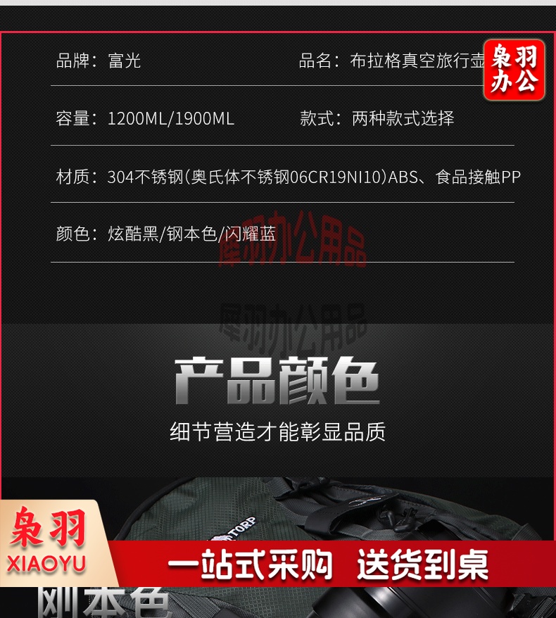 富光 FZ186062-1900大容量不锈钢水壶 黑色1900ml