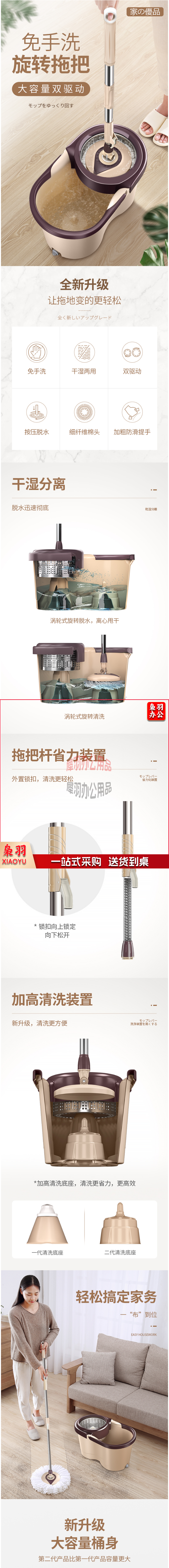 旋转拖把桶免手洗拖布桶懒人墩布好神拖手压式自甩水地拖墩布2个头