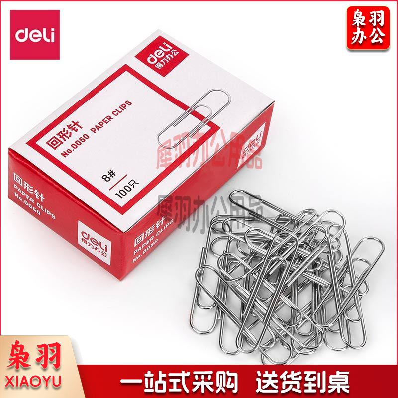 得力(deli) 0050大号回形针纸盒装 50MM银色 镀镍回形针 曲别针 一包十盒装