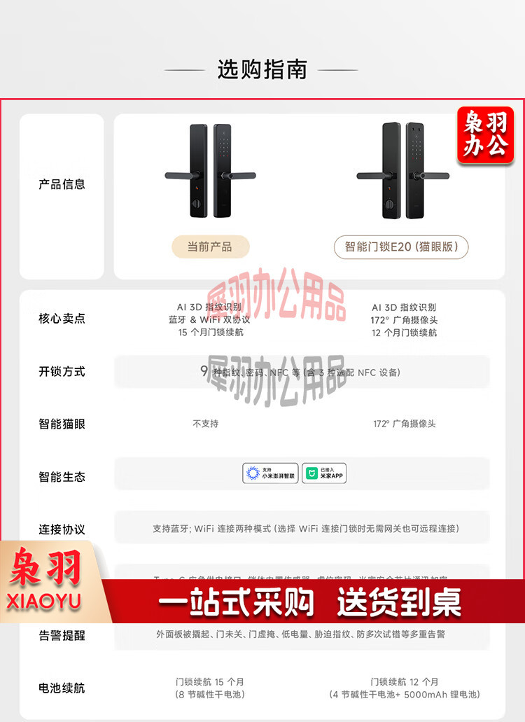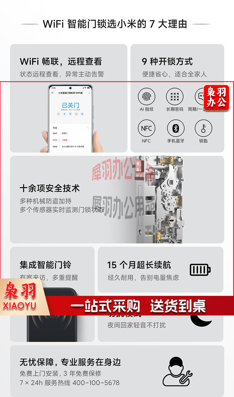 小米智能门锁E20 WiFi版 指纹锁电子锁密码锁防盗门锁