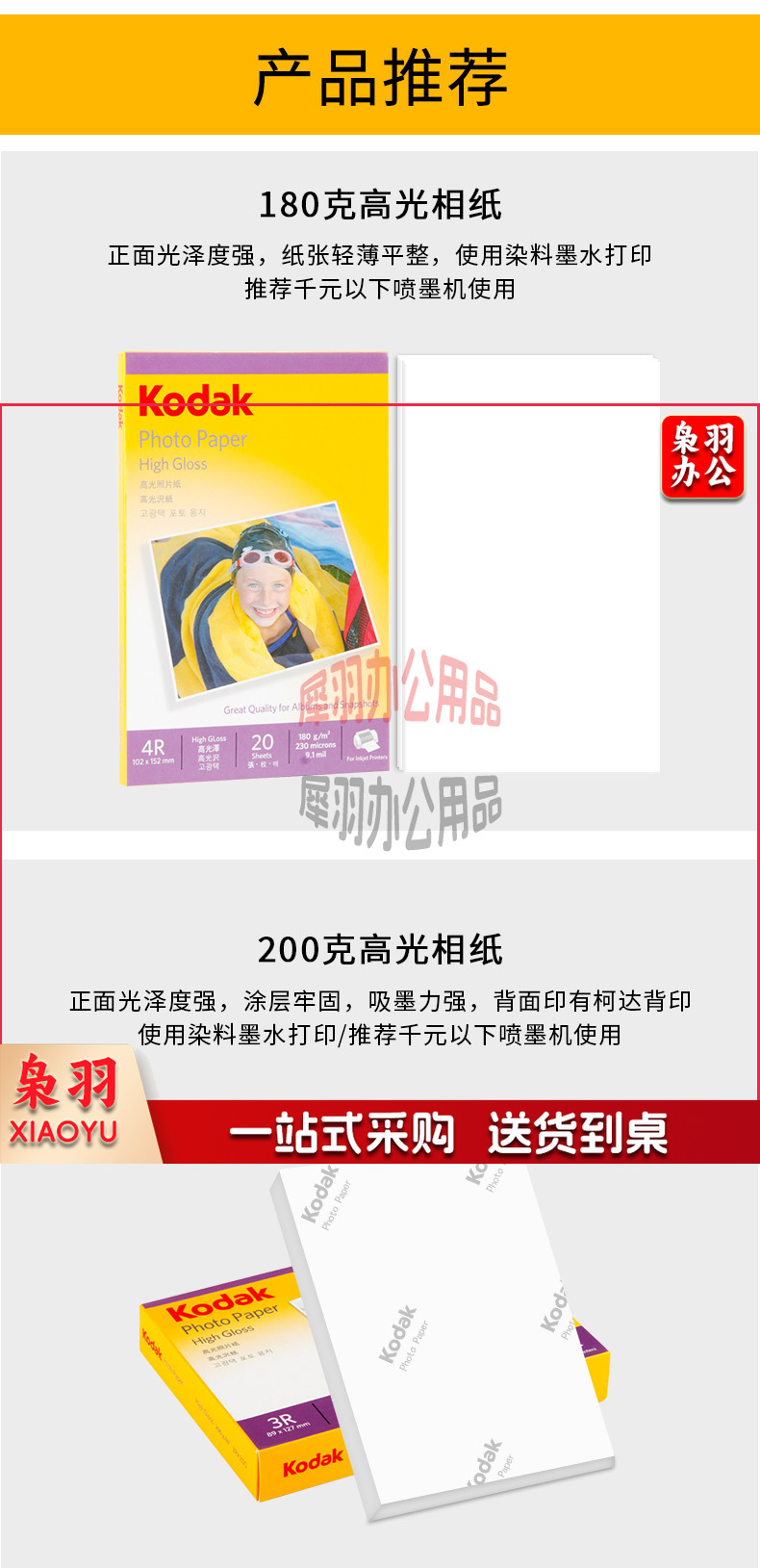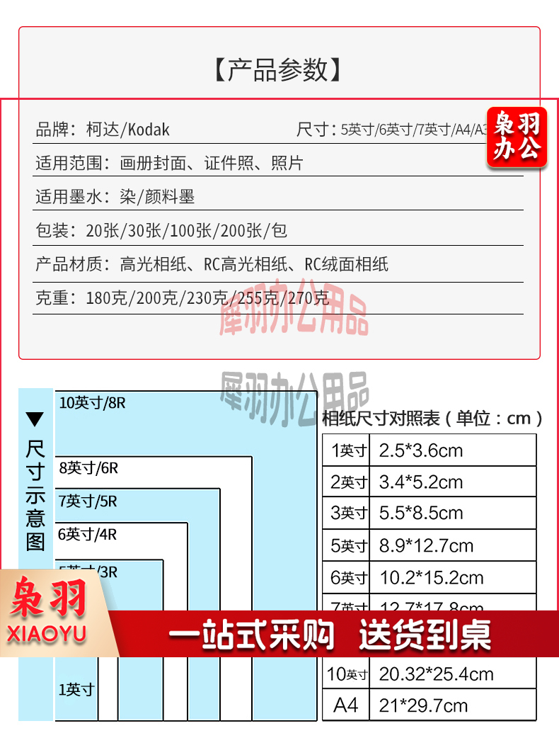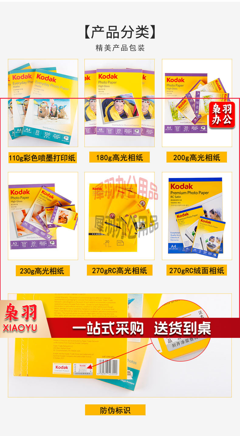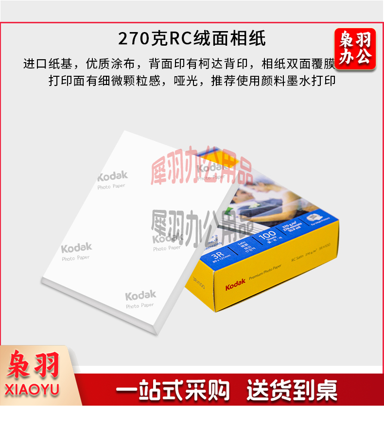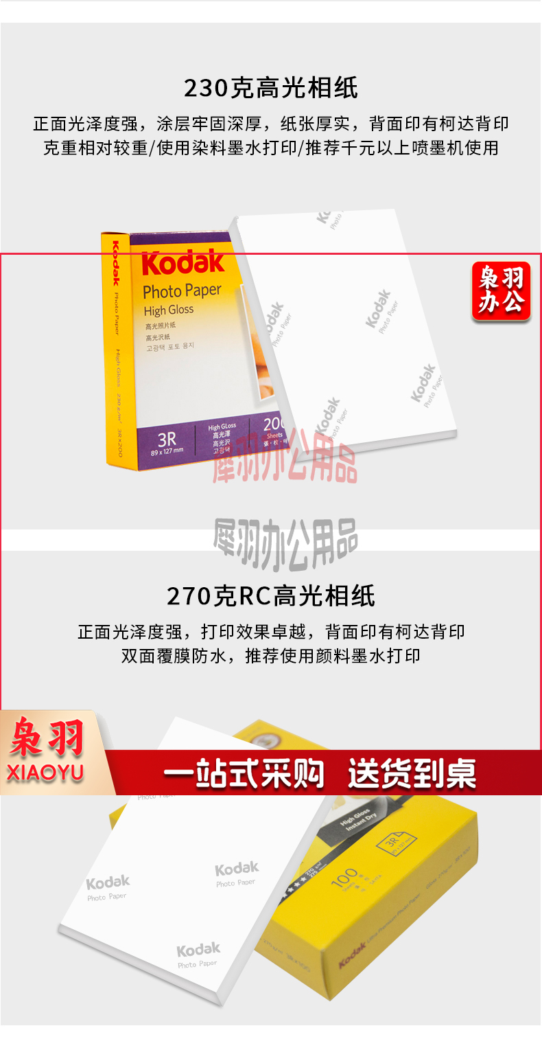 美国柯达 Kodak 4R/6英寸 200g高光面照片纸/喷墨打印相片纸/相纸 100张装