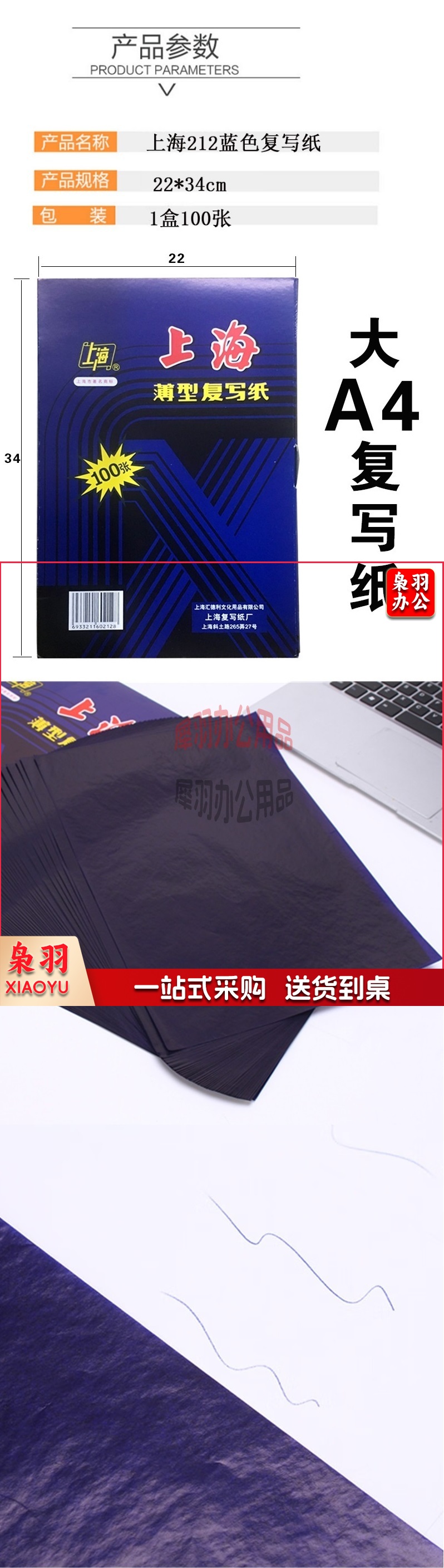 上海 复写纸大A4 蓝印纸 12开双面 22*34cm100张/盒 单位:盒