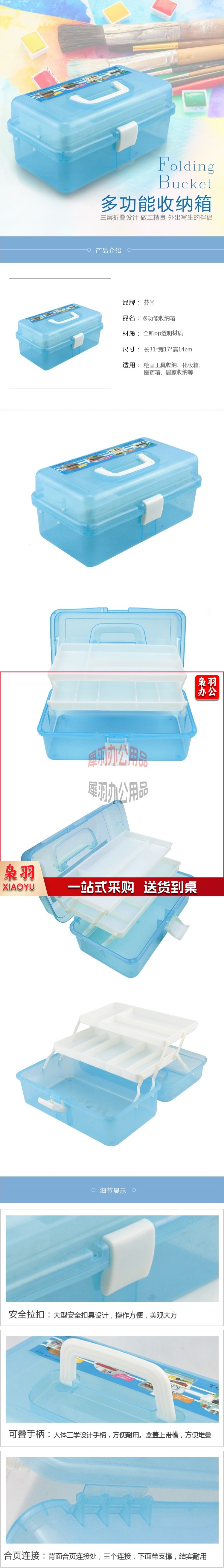 芬尚 多功能美术工具箱 学生手提便携式三层折叠绘画文具收纳箱大号325*185*145mm