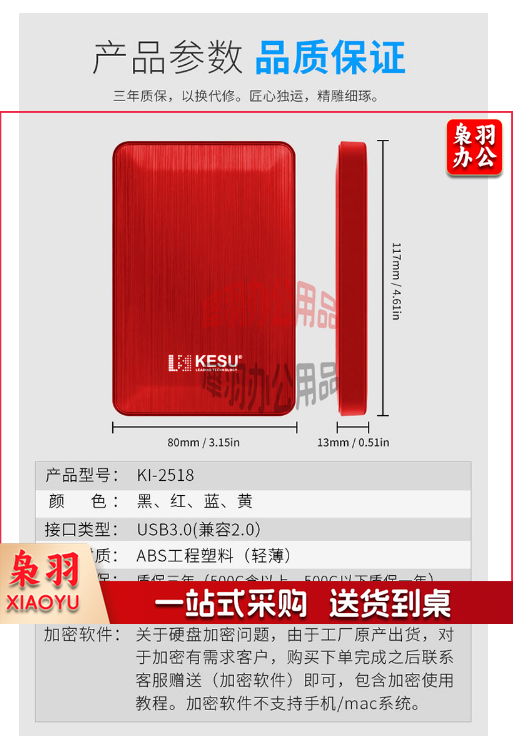 科硕 KESU 320GB 移动硬盘加密USB3.0 2.5英寸 手机连接 K1-时尚黑外接机械硬盘存储文件备份 大U盘