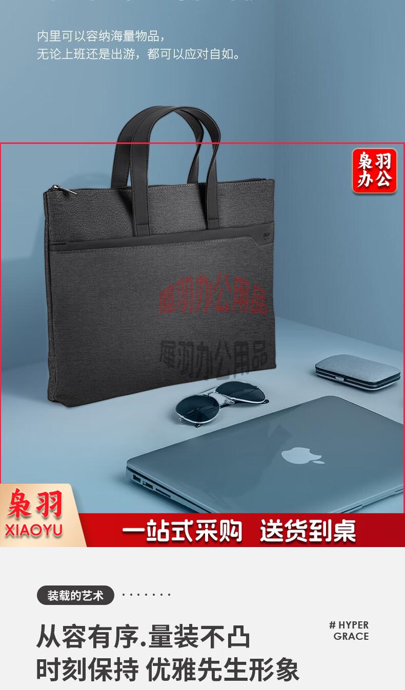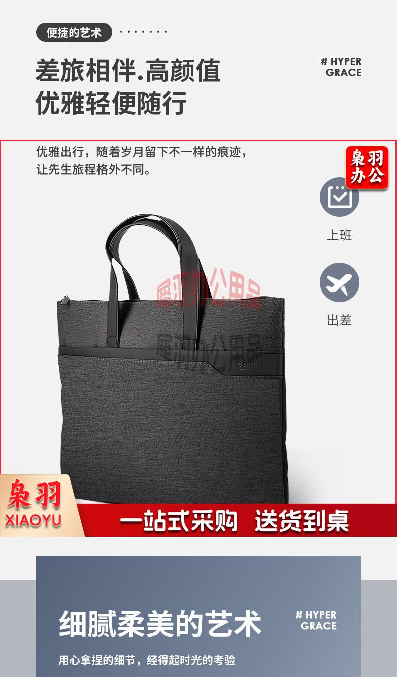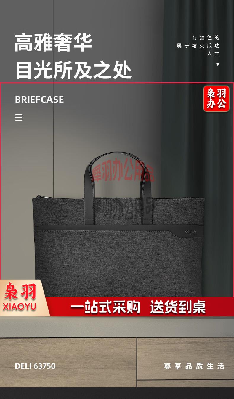 得力(deli)手提袋/会议包/事务包/文件包 商务拉链袋公文包 便携 时尚简约 深灰63750
