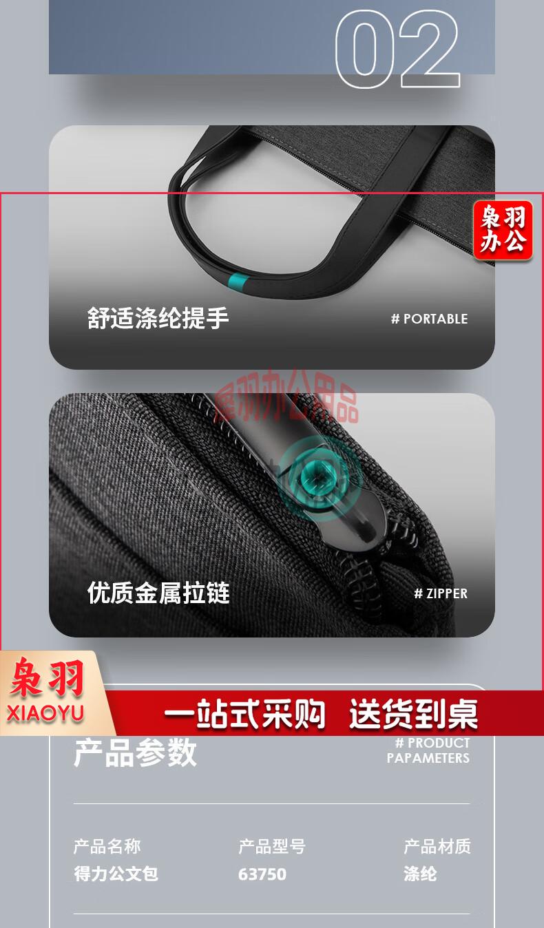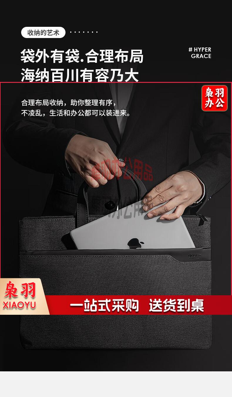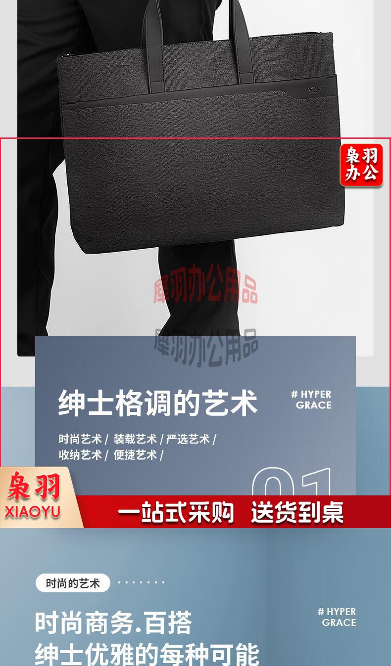 得力(deli)手提袋/会议包/事务包/文件包 商务拉链袋公文包 便携 时尚简约 深灰63750
