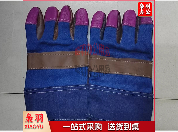牛皮电焊手套牛仔布短款耐磨焊工手套短皮氩弧焊焊接手套海员手套(颜色随机发) 1双