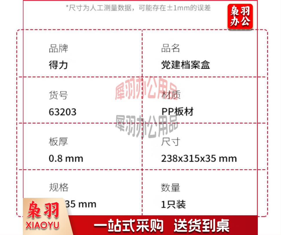 得力63203红色党建档案盒A 4塑料文件盒35mm