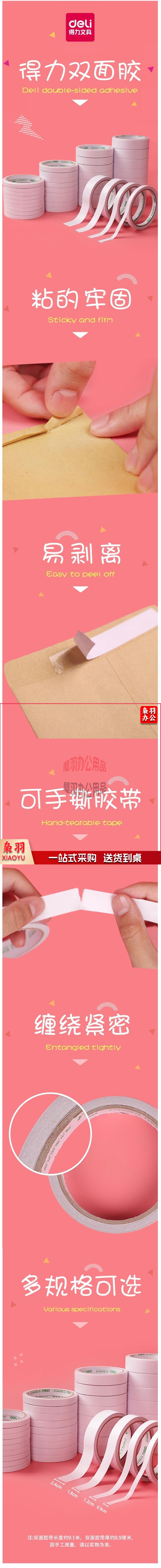 得力(deli) 30407 双面胶 棉纸双面胶带 80um粘胶层 24mm*10y 10卷/袋