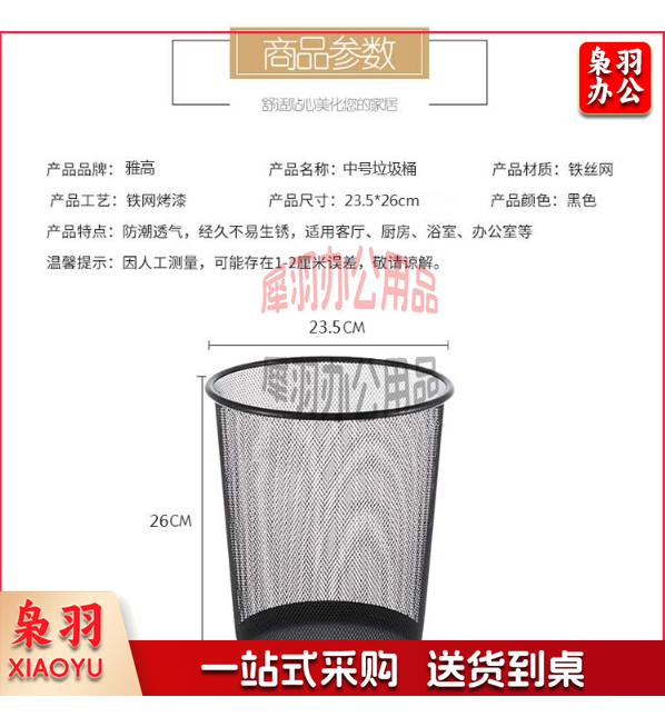 雅高 金属垃圾桶家用垃圾分类/垃圾篓/纸篓 中号