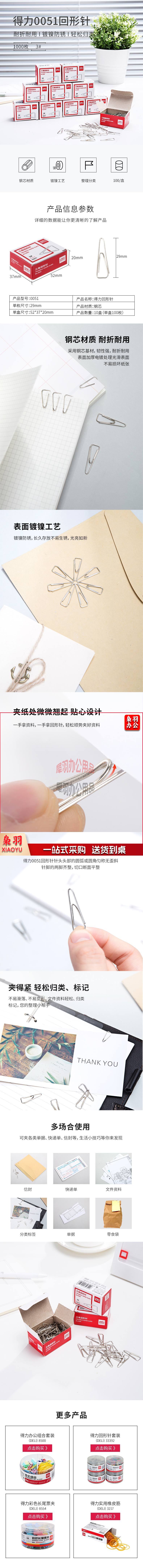 得力(deli)镀镍金属彩色回形针/曲别针 财务文件分类收纳 办公用品 0051 经济型三角回形针