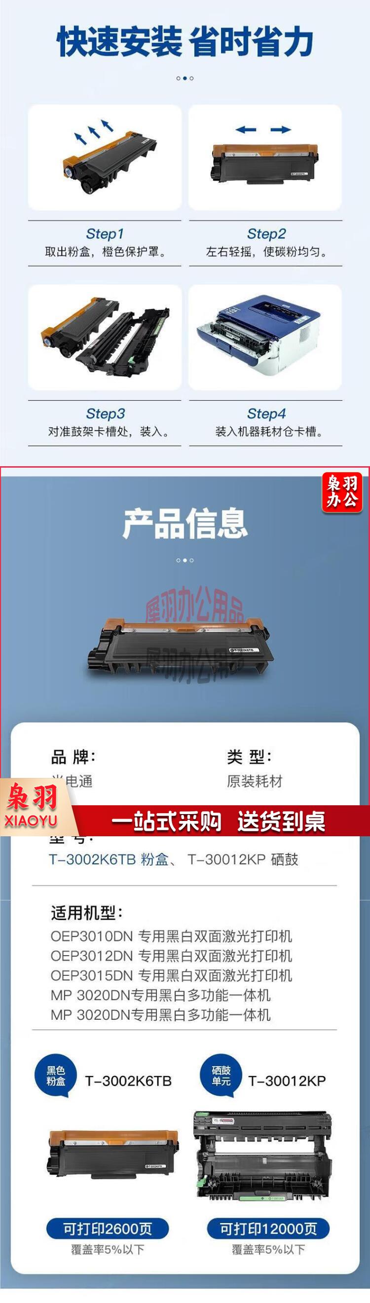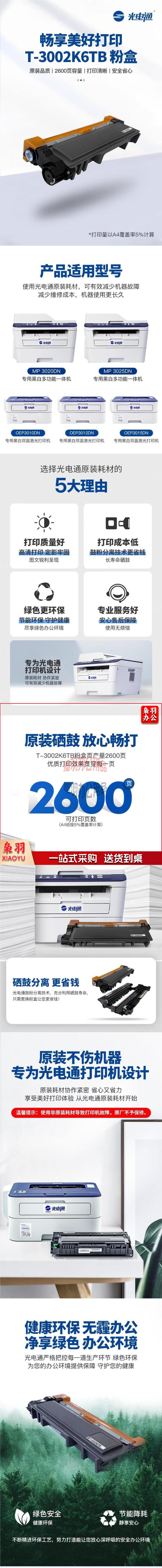 光电通(TOEC)T-3002K6TB 原装粉盒 适用 OEP3010DN/OEP3015DN/MP3020DN/MP3025DN(单位:个)