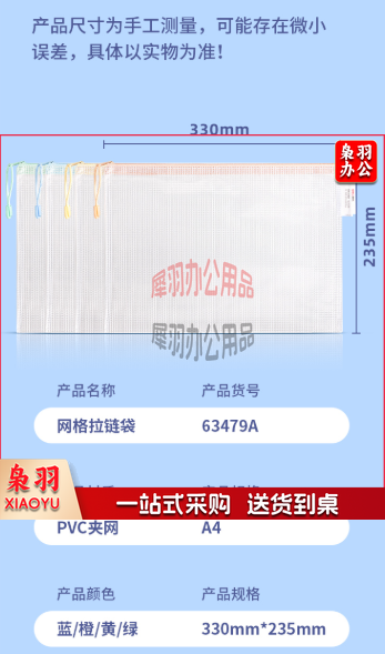 得力63479A透明网格拉链袋(混)(个)