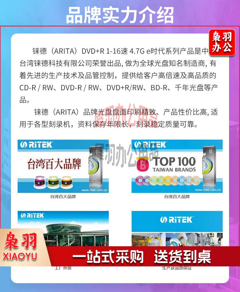 铼德(ARITA)e时代系列 DVD+R 16速4.7G 空白光盘/光碟/刻录盘 桶装50片