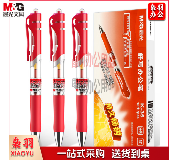 晨光(M&G)文具K35/0.5mm红色中性笔 按动签字笔 经典子弹头红色水笔 12支/盒 TJHX01131530585783