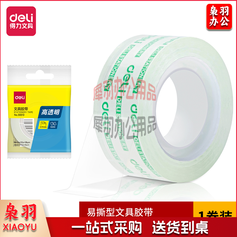得力30010易撕文具胶带18mm*30y*38um(透明)(1卷)