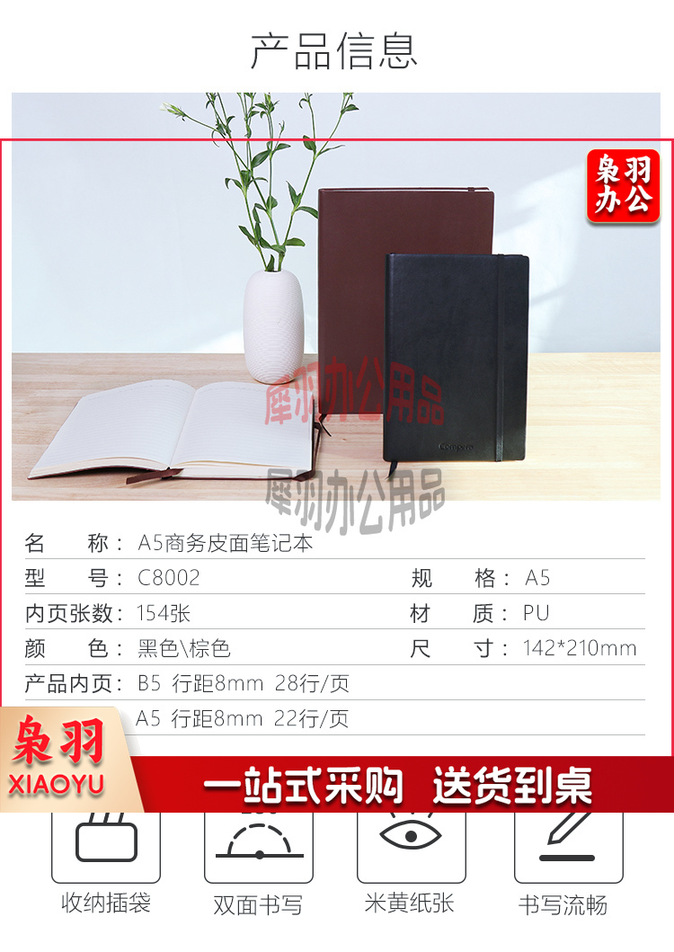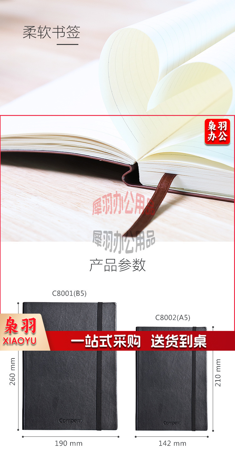 齐心(COMIX) A5/154张商务皮面笔记本子/记事本/日记本 Compera系列 黑色 办公文具 C8002