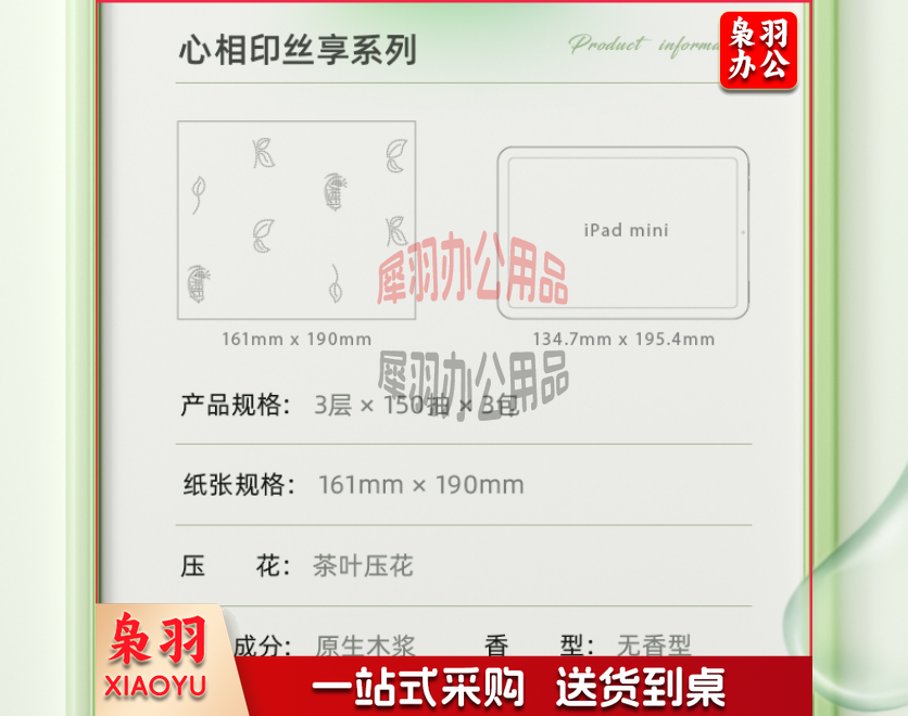 心相印抽纸 茶语丝享DT32150 真M码3层150抽*3包/提纸巾