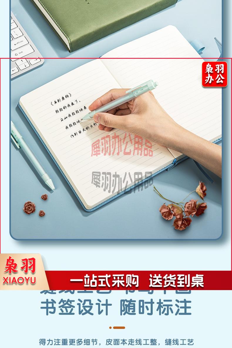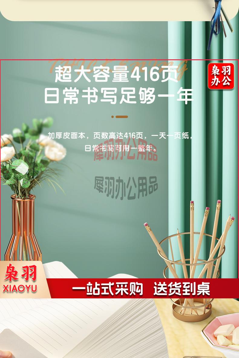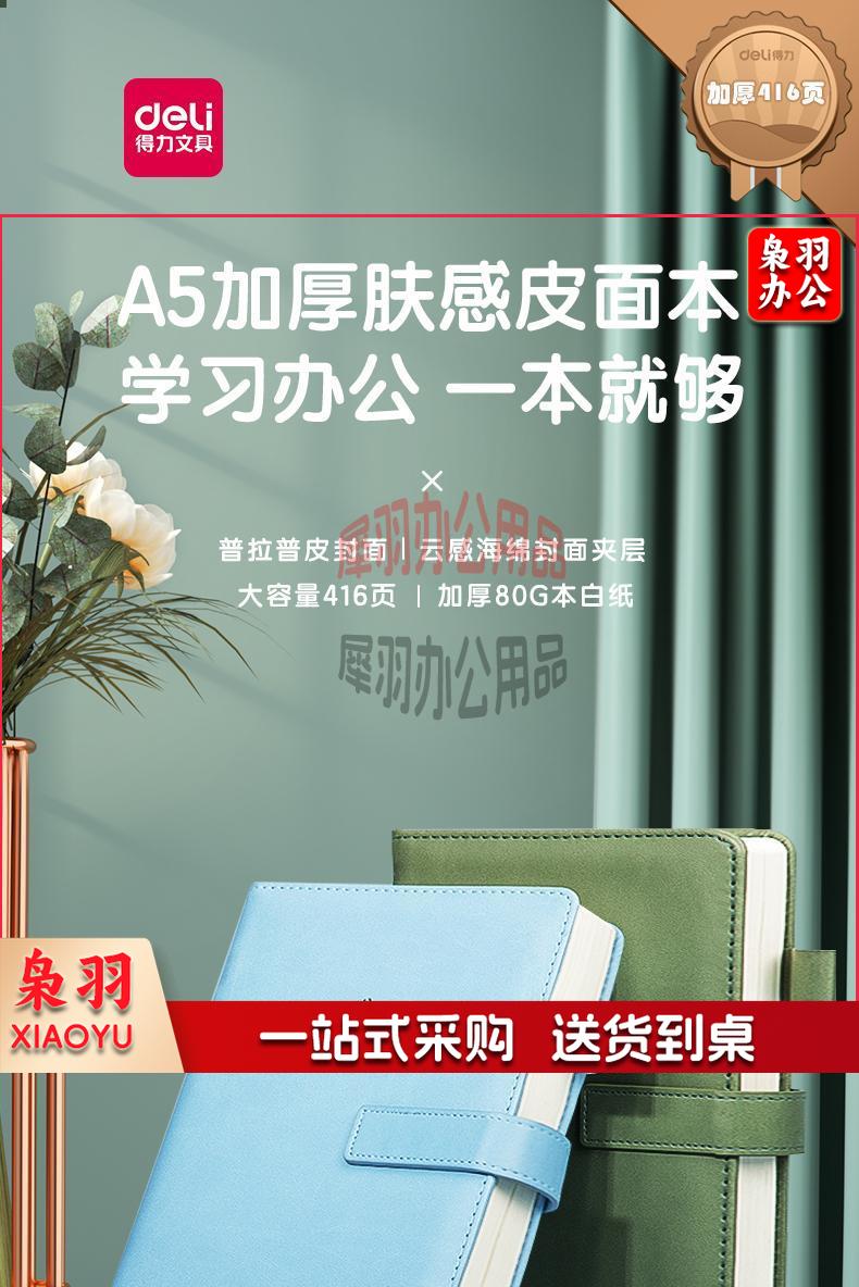 得力(deli)A5/208张笔记本子 商务记事本会议记录本 简约加厚学生日记本 办公文具用品 绿色3348