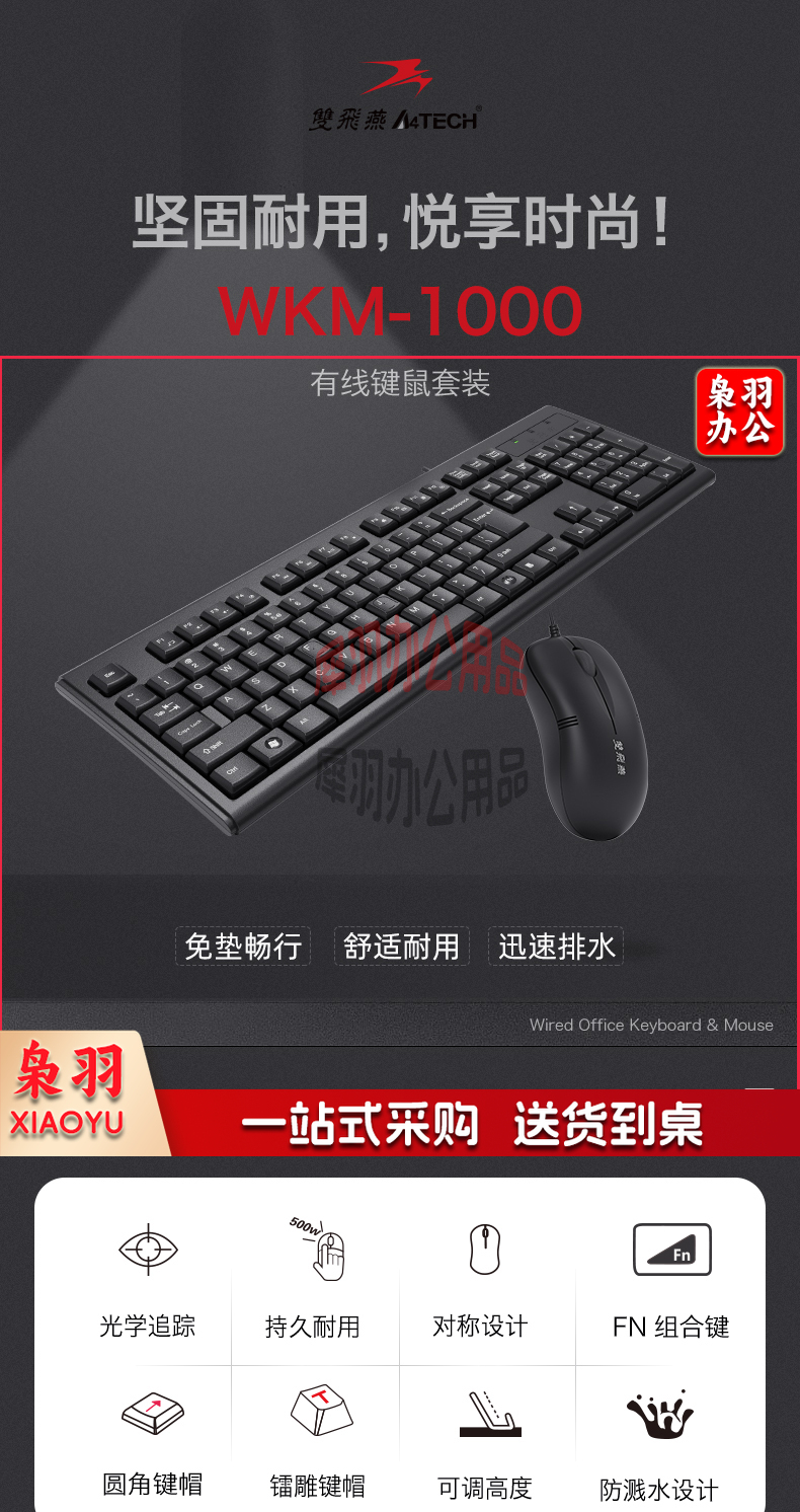 双飞燕(A4TECH)WKM-1000 键鼠套装 有线键鼠套装 办公键鼠套装 便携 防泼溅 商务 黑色
