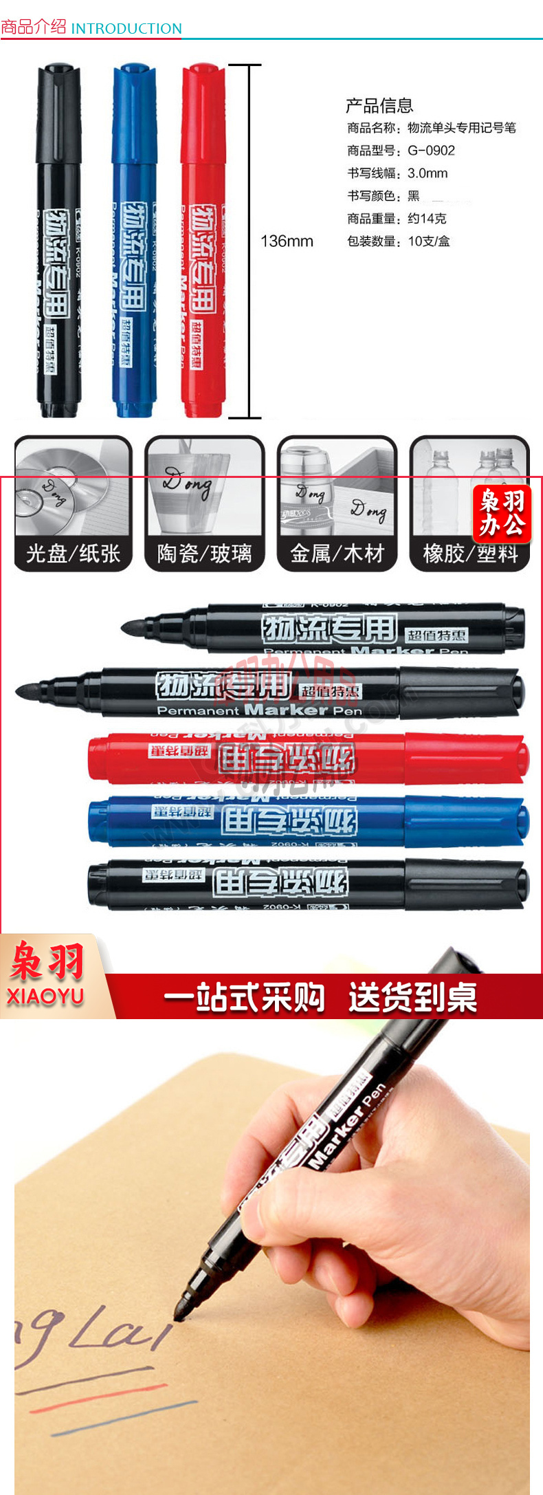 物流专用记号笔 G-0902 3.0mm (黑色) 10支/盒