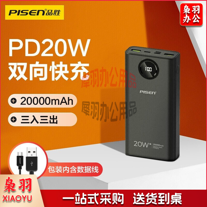 品胜 PD20W20000毫安时双向快充充电宝便携大容量数显移动电源Type-C输入输出适用苹果12小米华为手机通用 黑