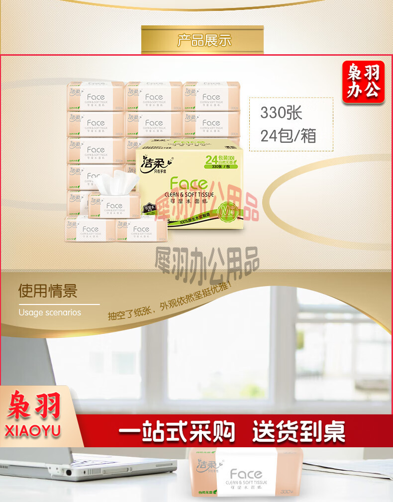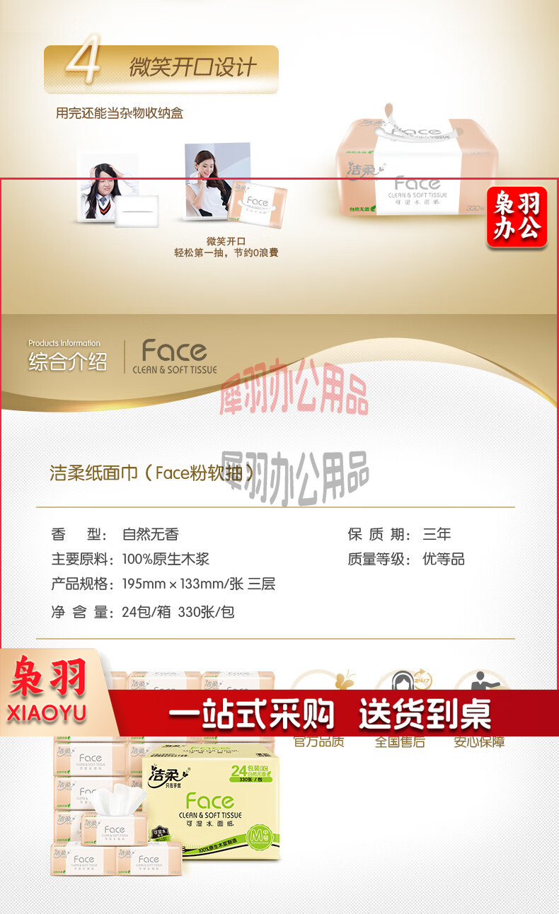 洁柔抽纸 柔韧330张面巾纸*24包 粉Face (M号 可湿水3层110抽每包)