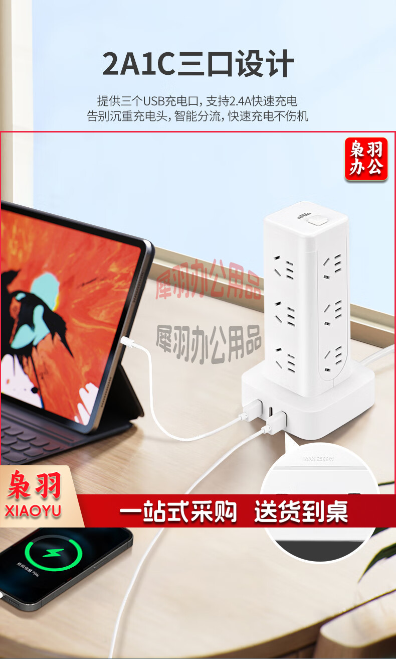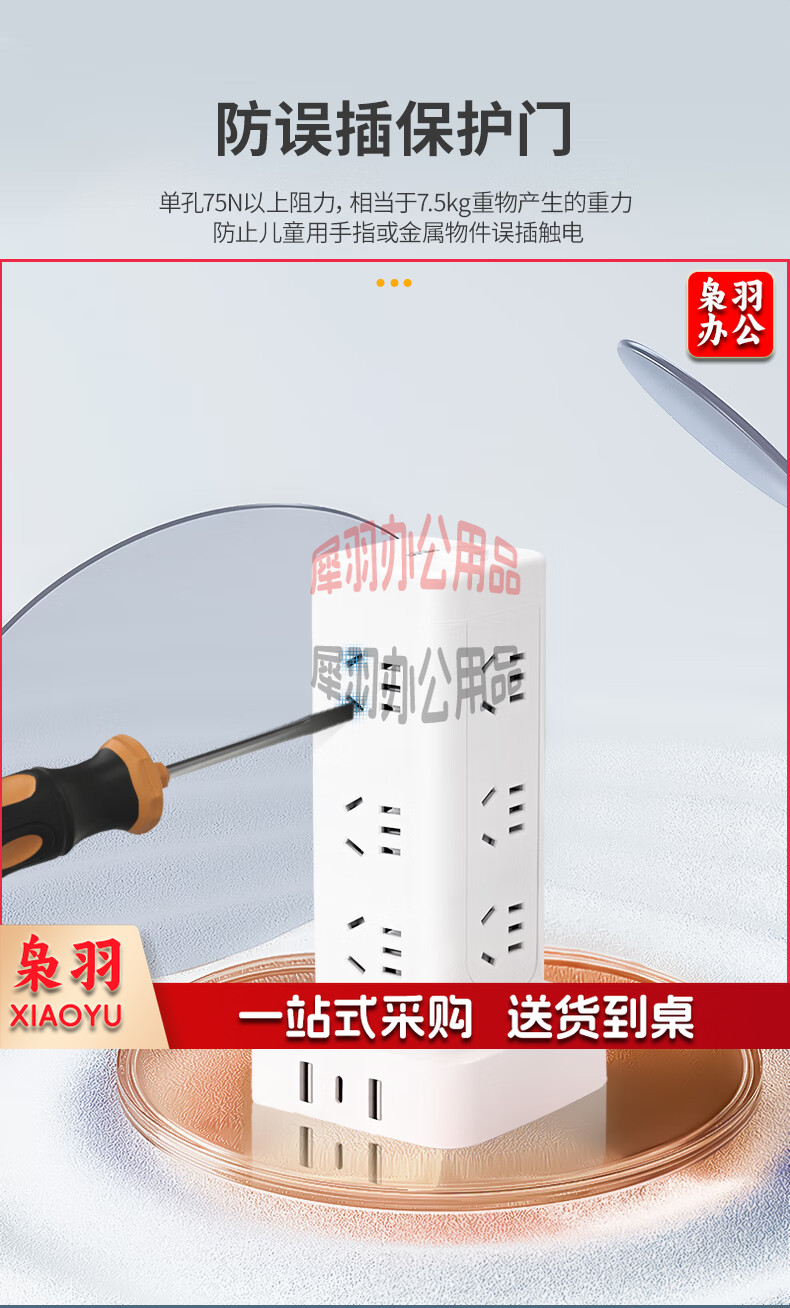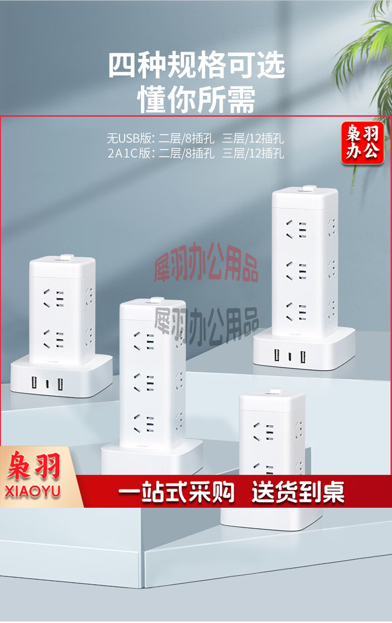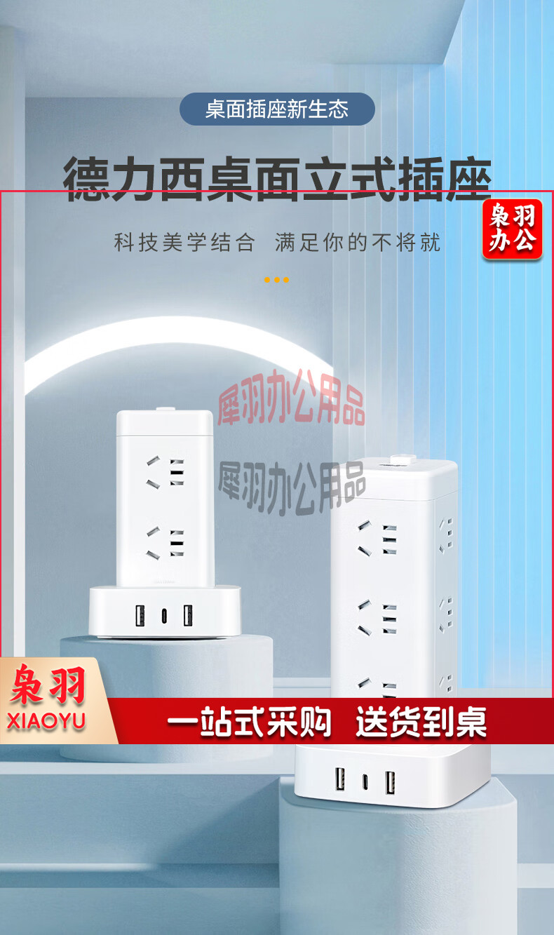 德力西(DELIXI)立式插座/插排/排插/插线板/插板/接线板/拖线板 12位五孔USB+TYPE-C总控3米过载保护