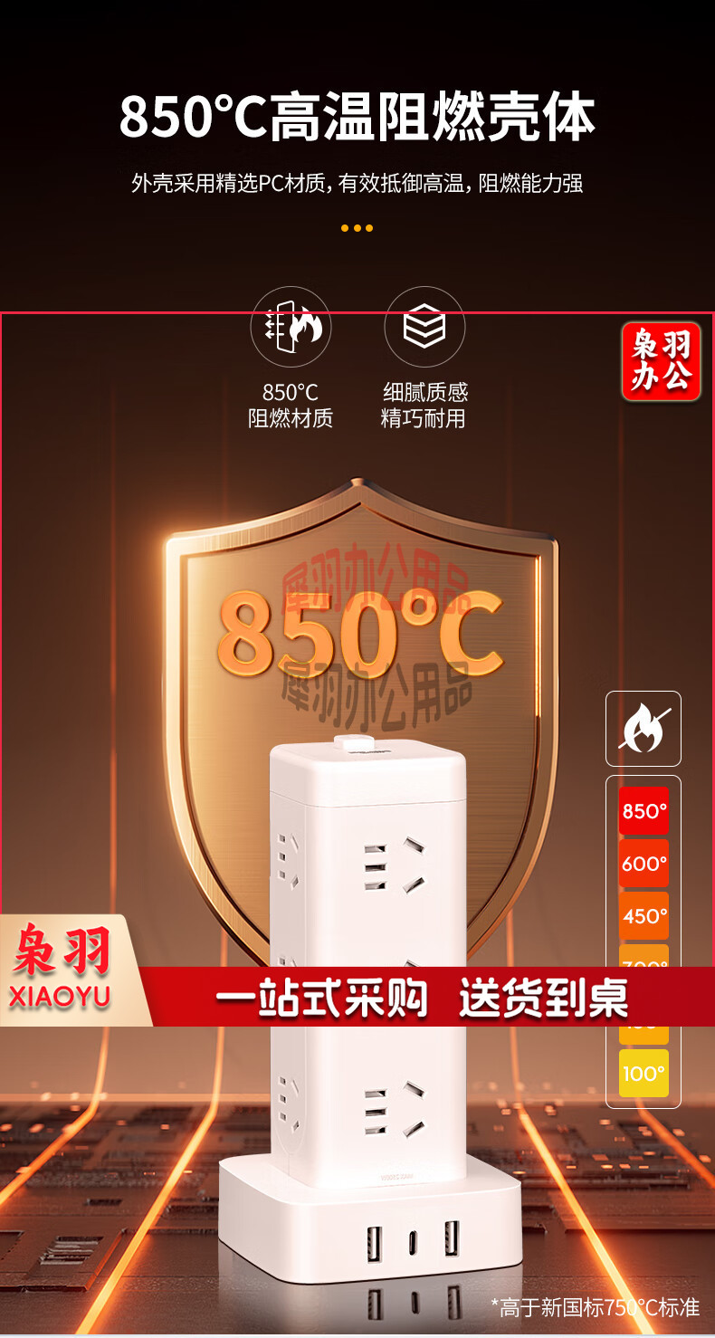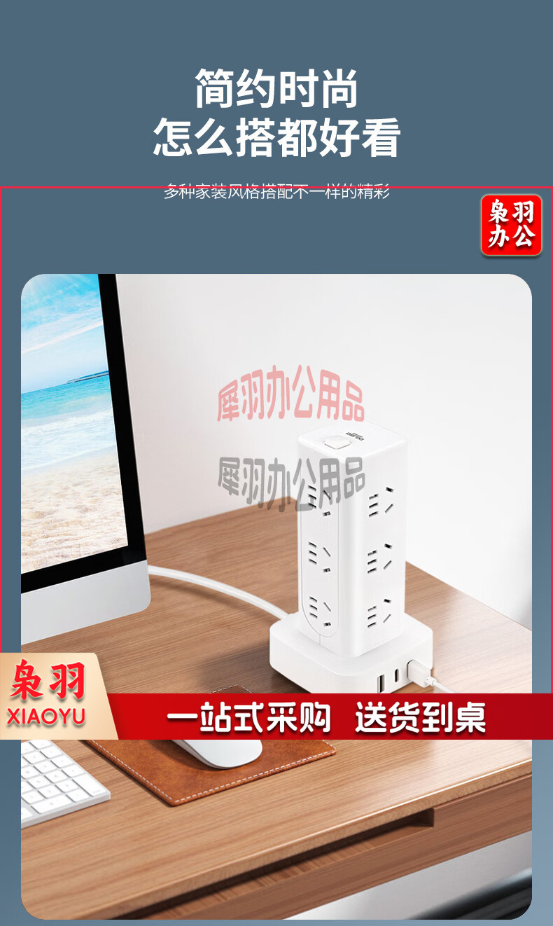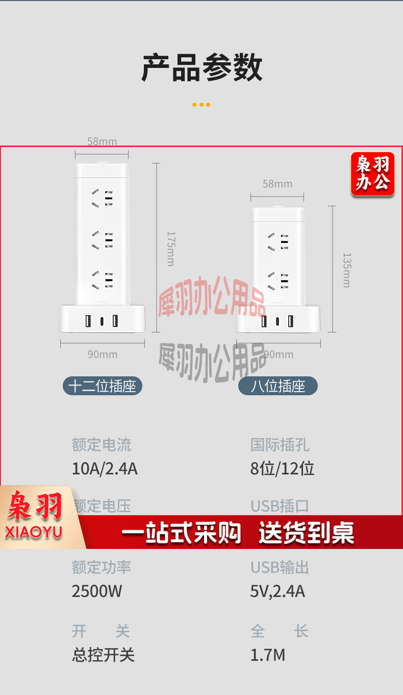 德力西(DELIXI)立式插座/插排/排插/插线板/插板/接线板/拖线板 12位五孔USB+TYPE-C总控3米过载保护