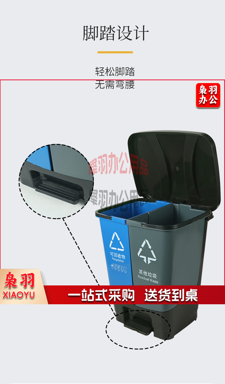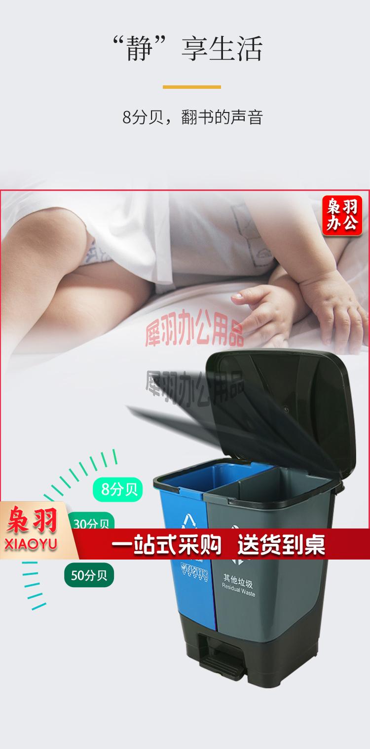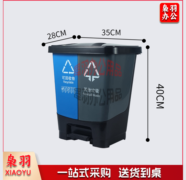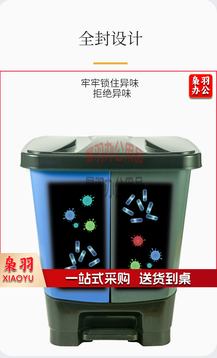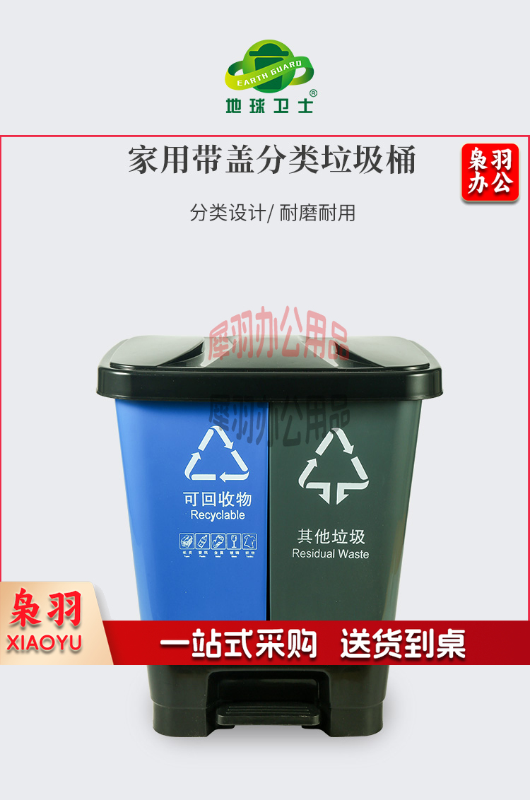 地球卫士 20L双桶脚踏垃圾桶带盖分类垃圾桶厨房商用塑料20升垃圾桶(蓝+灰)