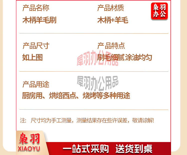 食品级羊毛刷烧烤专用油刷子厨房烙饼刷油酱月饼家用烘焙工具商用 1支装羊毛刷大号