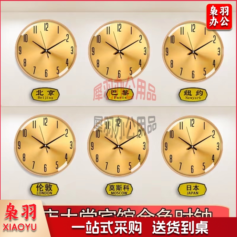 酒店挂墙钟 16英寸大堂前台金色挂钟 大厅石英钟表