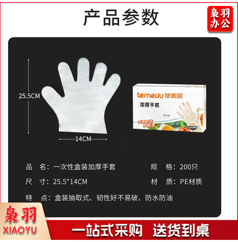 一次性盒装抽取式PE材质透明加厚手套 200只装