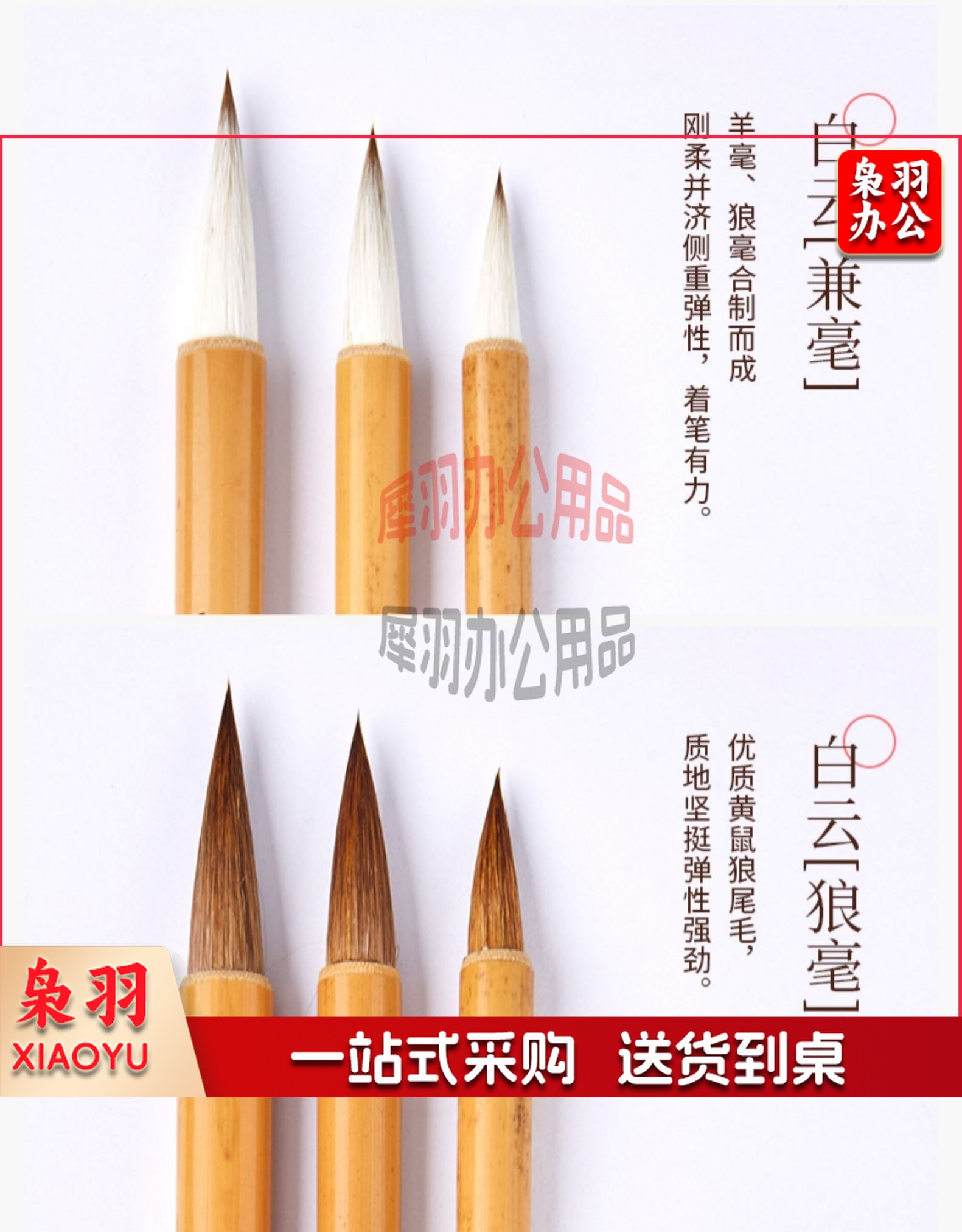 毛笔 传统白云兼毫毛笔套装 大中小号三支装