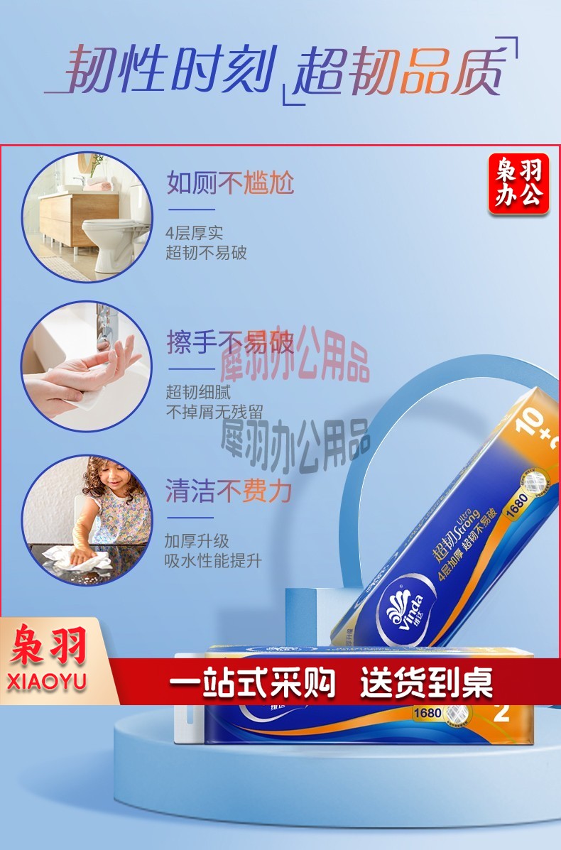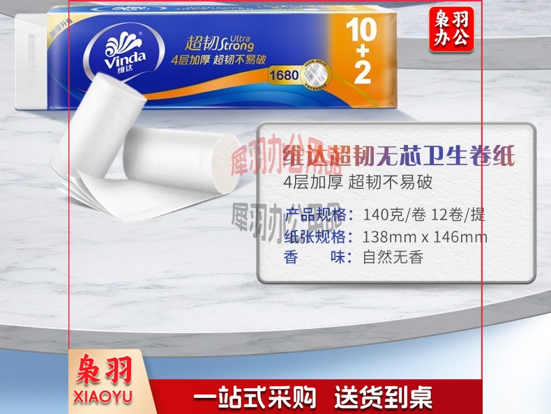 维达(Vinda)卷纸 超韧无芯卷纸140克12卷 4层加厚 卫生纸卷筒纸