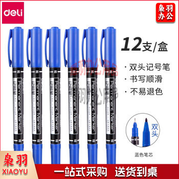 得力6824 思达油性记号笔 双头勾边笔 多用途描边笔 绘画勾线笔 马克笔 蓝色 12支起售