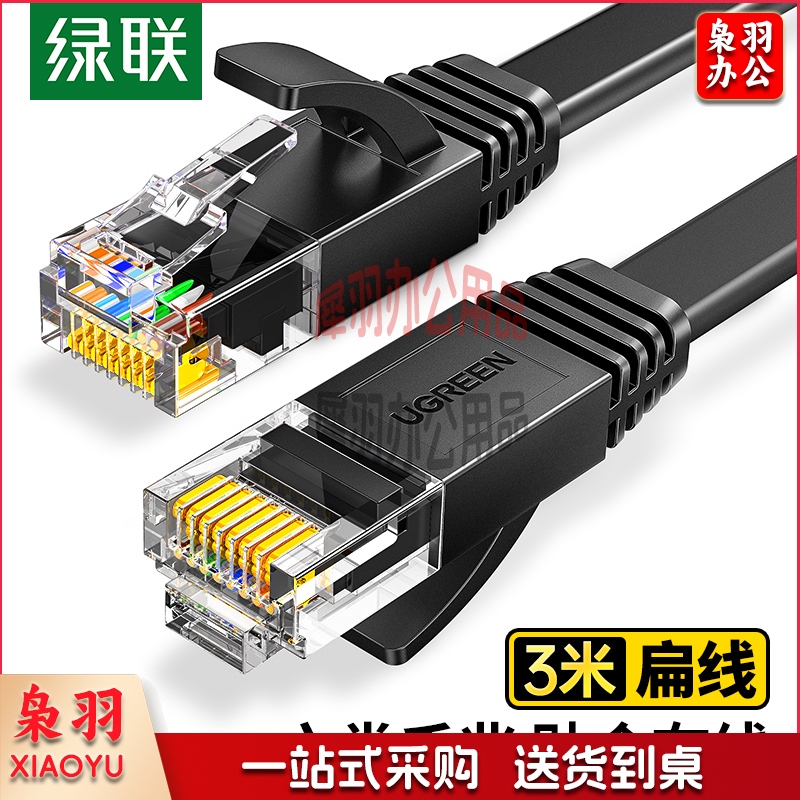 绿联(UGREEN)50175 六类CAT6类网线 千兆网络高速连接线 电脑宽带家用非屏蔽扁 平跳线 成品网线 黑色 3米