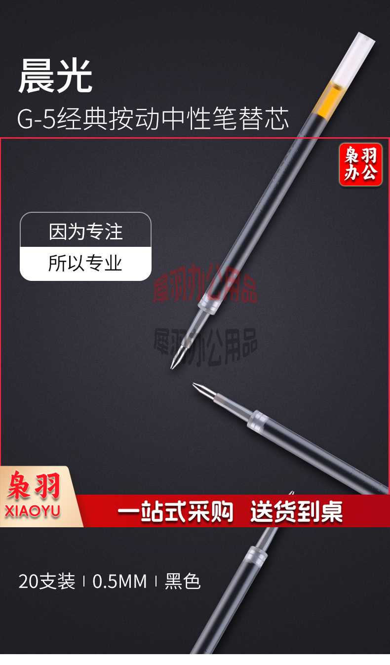 晨光 G-5 中性笔芯 0.5 黑色 单位:支 适用于K-35 20支/盒 请整盒下单