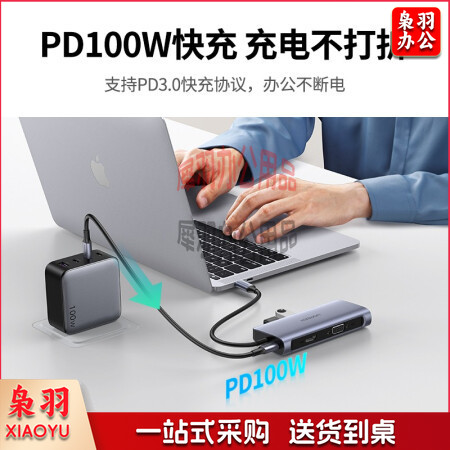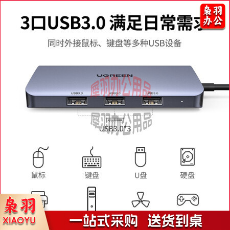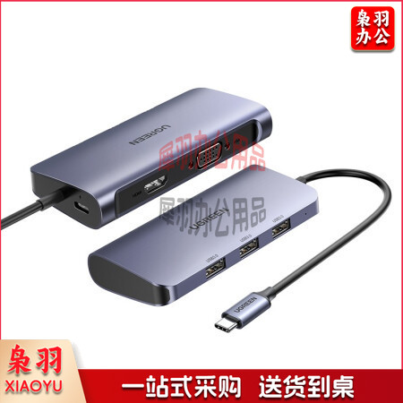 绿联Type-C扩展坞USB-C转HDMI/VGA转换器雷电3拓展分线器适用华为苹果MacBook 6合1【HDMI+VGA+USB3.0】50319
