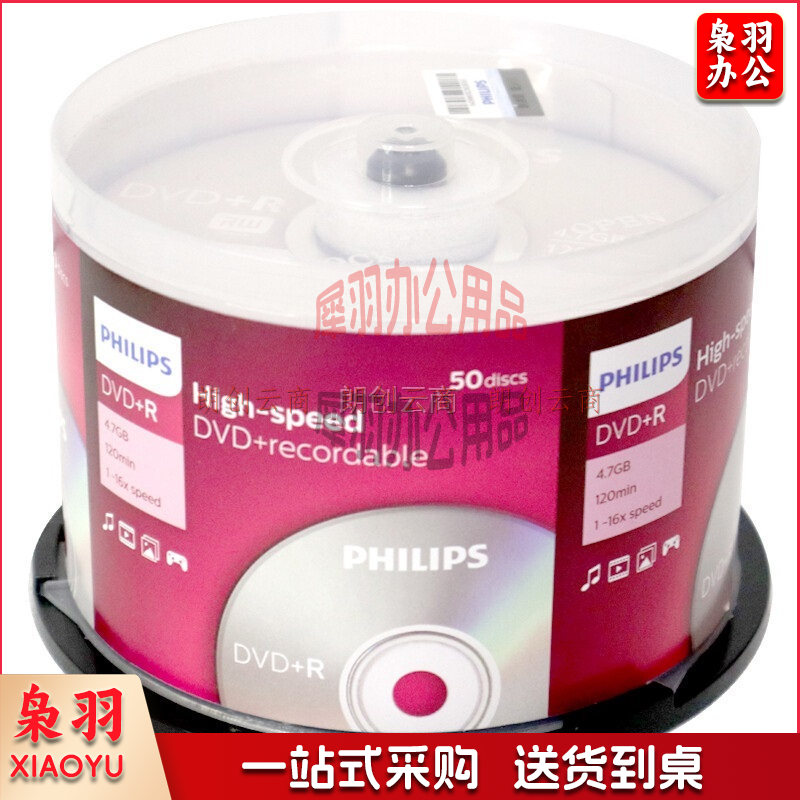飞利浦(PHILIPS)DVD+R空白光盘/刻录盘 16速4.7G 桶装50片qqq3936