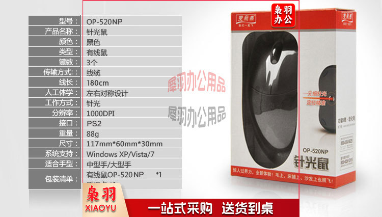 双飞燕(A4Tech)OP-520NP 有线针光鼠标 PS2接口 黑色