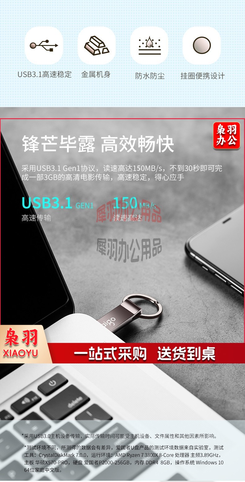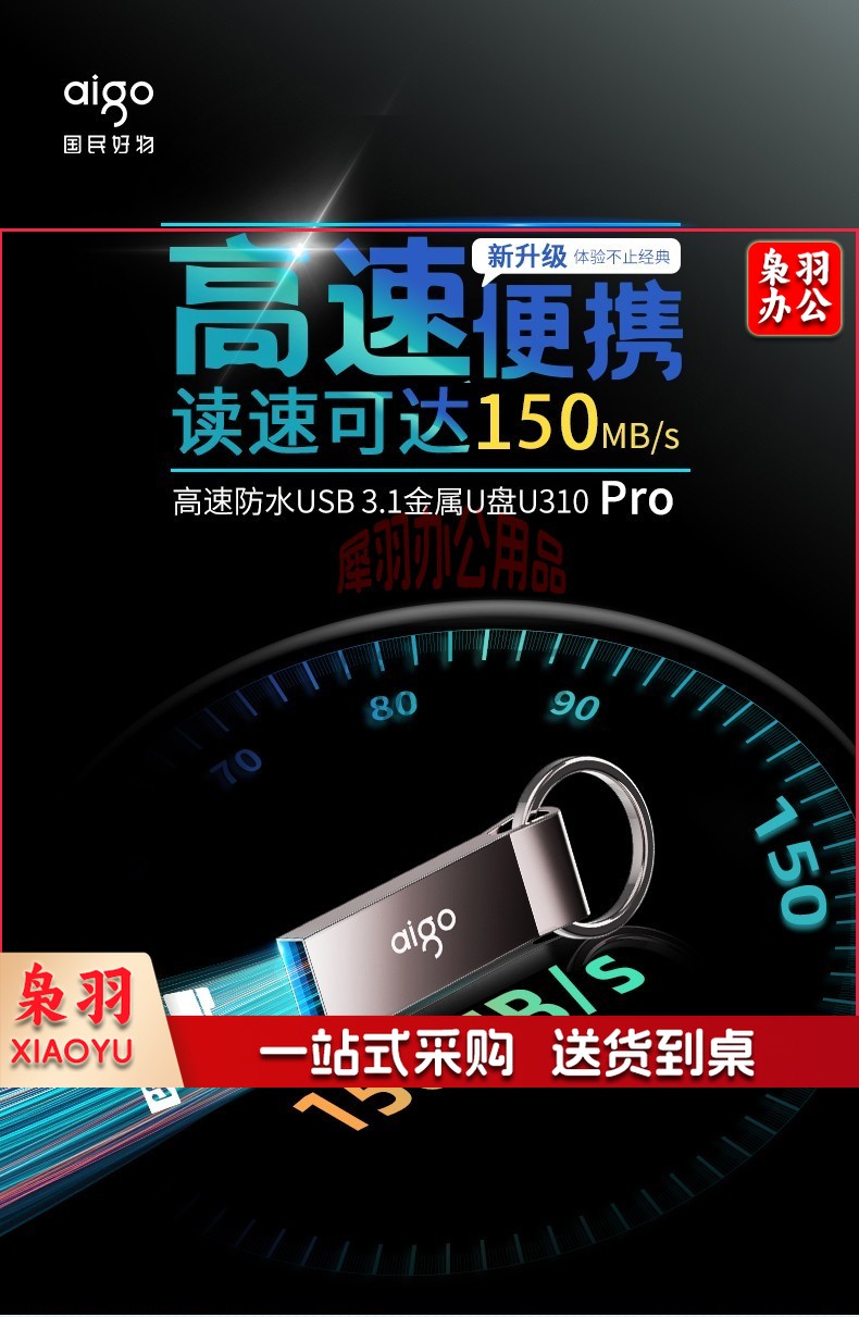 爱国者(aigo)128GB USB3.1 高速读写U盘 U310 Pro 金属U盘 读速150MB/s 防尘防水