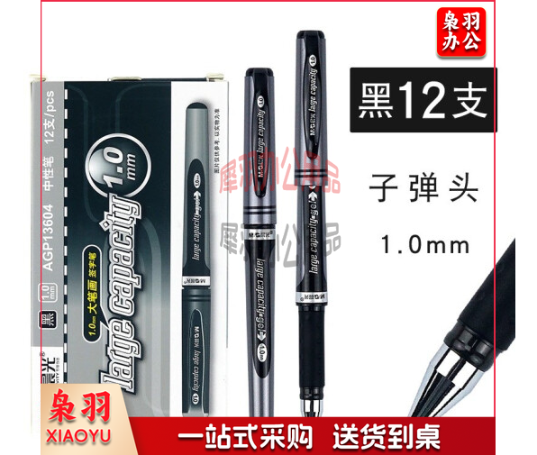 晨光 1.0mm签字笔中性笔 粗笔 AGP13604 12支/盒 黑色 笔
